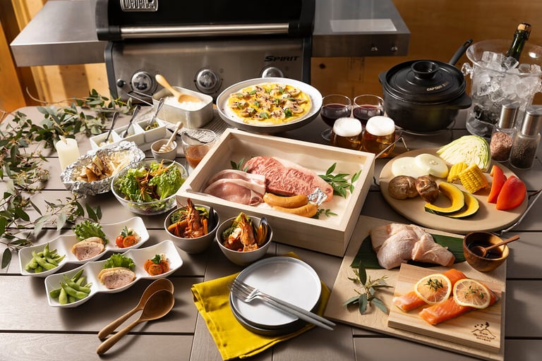 敷地内のBBQスペースで楽しめるのは、信州・佐久の恵みをふんだんに使ったグランピングBBQ。