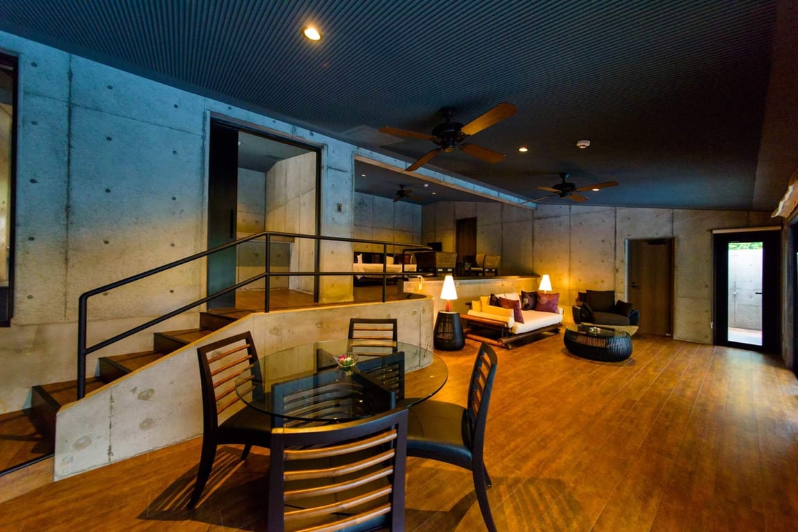 ヴィラはそれぞれ、洗練されたシンプルな設計でゆったりとした開放感に包まれています。