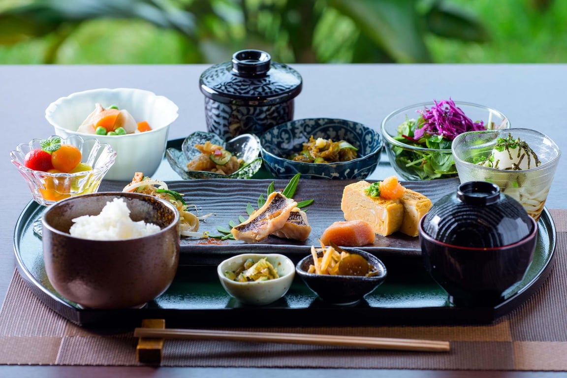 食事は黒毛和牛、やんばる島豚あぐーなど、地元の新鮮な食材を使った和洋琉創作料理。