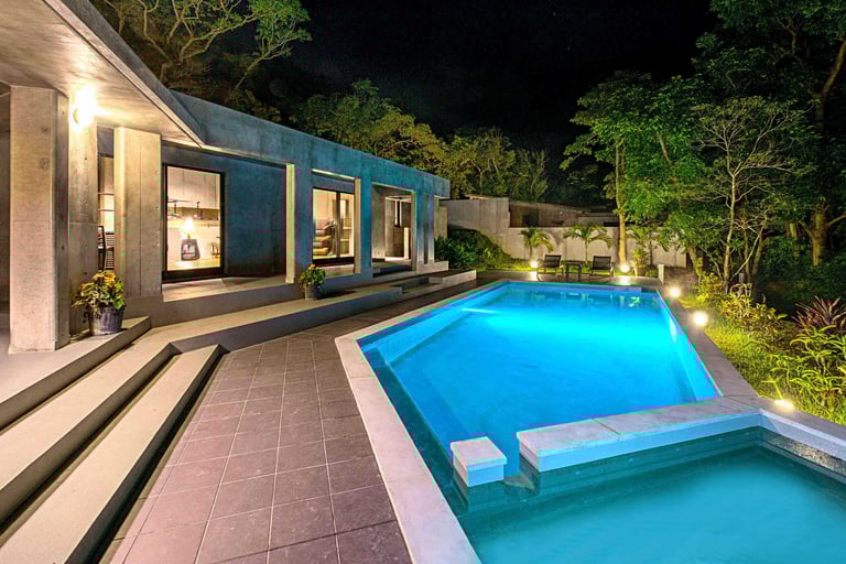 日中は森に囲まれたプールで思い切り泳いだり、ゆったりと浮かんだり。 夜は幻想的にライトアップされたナイトプールが楽しめ、 満天の星空の下、虫や鳥の声だけが響く、日常を忘れる贅沢なひとときを。