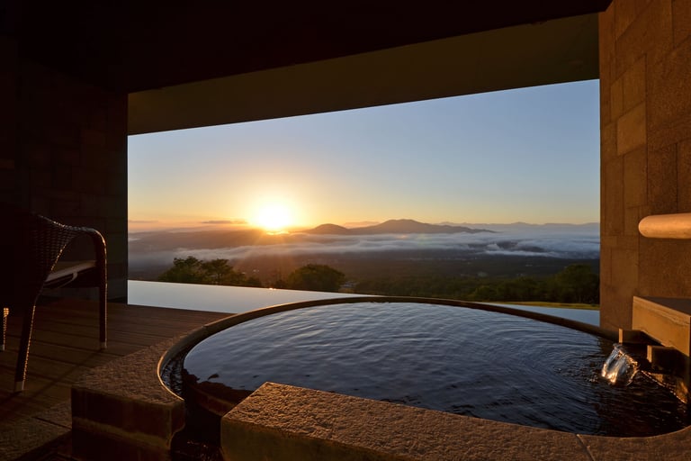 “SPA&SUITE棟“にある大浴場では、遮るものがなにもない絶景を一望。サウナやデッキテラス付きの露天風呂もあり、疲れた心と体をリラックス&リフレッシュ。本館には無料の貸切家族浴室があり、プライベート空間で源泉かけ流しの温泉が楽しめます。
