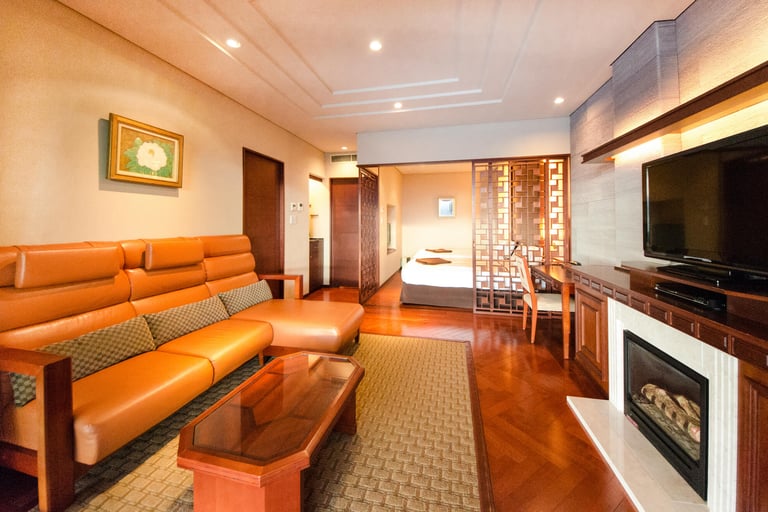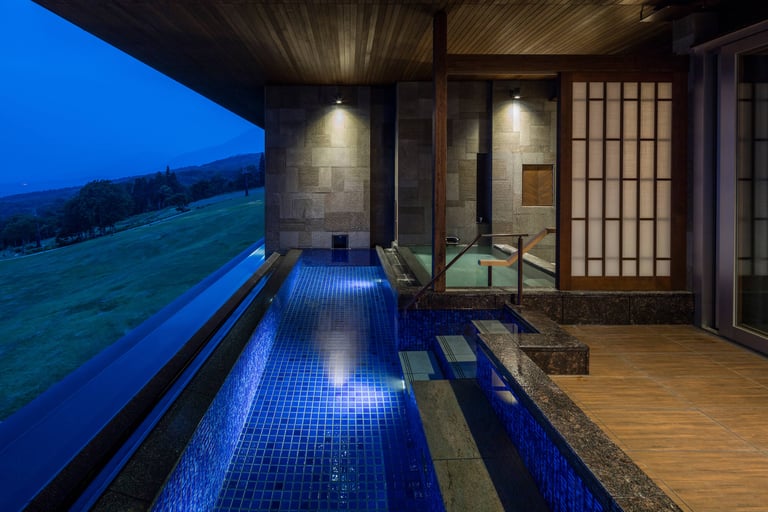 全室に源泉掛け流しの露天風呂を備えた“SPA&SUITE棟“、クラシカルモダンな落ち着いた雰囲気の内装の“本館“、温泉露天風呂付テラスルームがつく“プレミアム棟“から好みの部屋を選択。