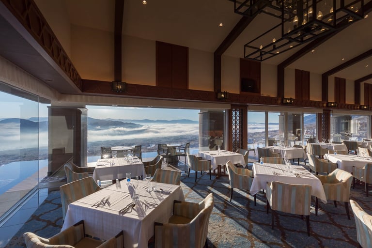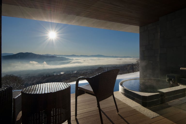 新潟県は勿論のこと、日本でも一二を争う山岳リゾートホテル。特に遮るものがなにもないホテルからの眺望は素晴らしいの一言。源泉かけ流しの露天風呂に浸かりながら見るご来光、2つのメインダイニングでの食事、贅沢なスパ、十分なスタッフ、行き届いたサービス、とても快適な滞在でした。皇室など著名人が挙って滞在するのも頷けます。
