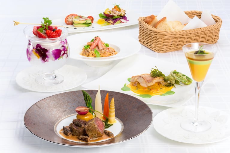プレミアム棟の最上階には“アクアダイニング“があり、雄大な眺望とともにグリル料理を。格調ある雰囲気の中“ソルビエ“では本格フレンチを、“白樺“では日本海からの新鮮な海や山の幸など旬の食材を使った懐石料理を堪能できます🍽