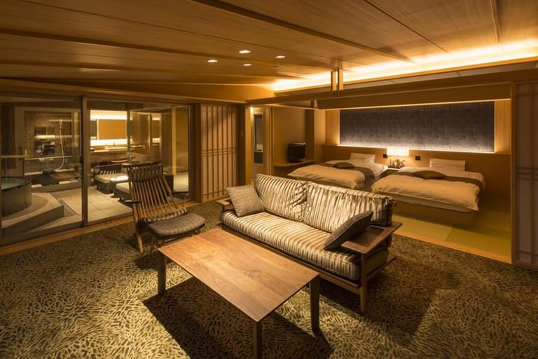 Executive客室”潮騒倶楽部”、露天風呂付コーナーツイン、一般客室などを用意。Executive客室は、露天風呂や半露天風呂付きの豪華な部屋や、個室お食事処で夕食がいただける絶景スイートなど、どれも贅沢な空間。行き交う船や、晴れた日は伊豆七島を眺められる優雅なひと時を。