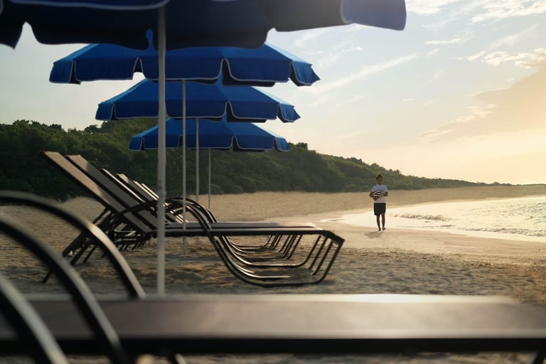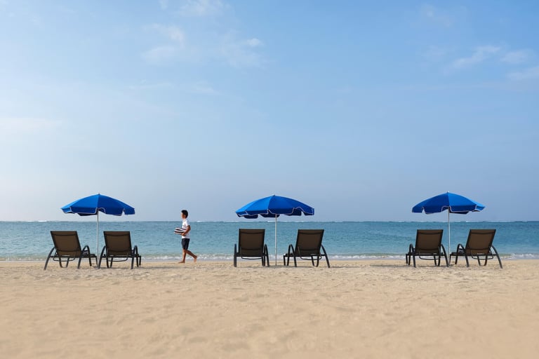 東京ドーム6個分の広大な敷地に、5つの宿泊棟と9つのレストラン&バーと4つのプールがある贅沢な環境がお出迎え。どこまでも続く空と海、広大な緑に囲まれればそこは異国情緒溢れる南国の楽園。