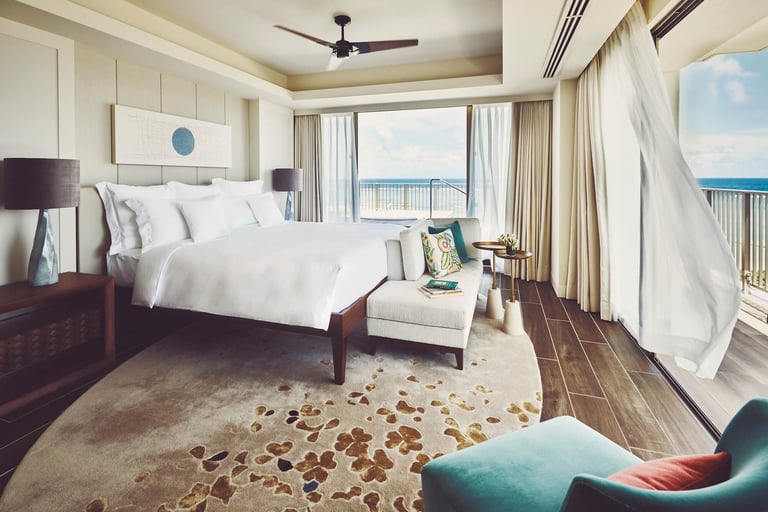 太平洋を一望できるクラブインターコンチネンタルルームでは、波の音を聞きながら白い砂浜とエメラルドグリーンの海の絶景を独り占め。さらに、コンシェルジュサービスや専用プールがつくなど贅沢の極み。