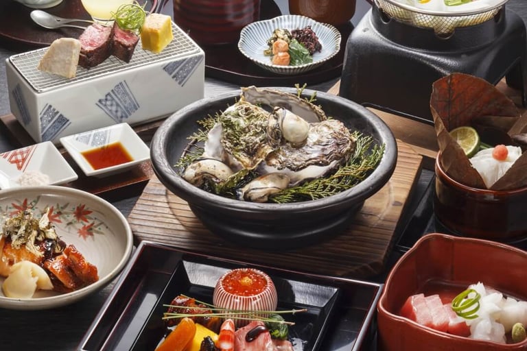 料理は、宮島牡蠣やアナゴ、小イワシなどの瀬戸内の海の幸や、広島牛、ワサビやきのこなどの山の幸をふんだんに使った和食を味わえます🍽