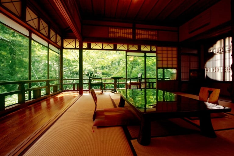 もみじ谷に溶けこむ四季折々の景色を眺めながら、静けさを満喫できる宿…