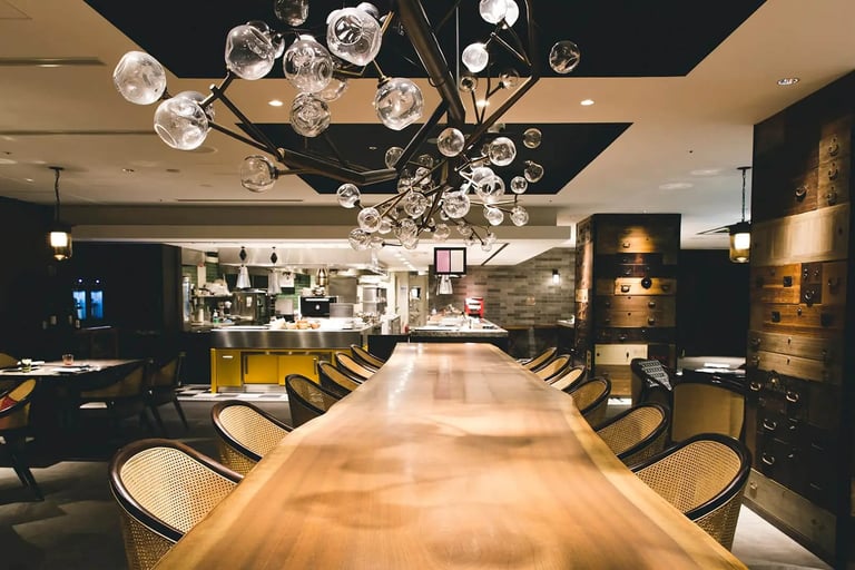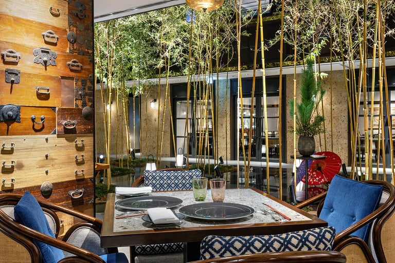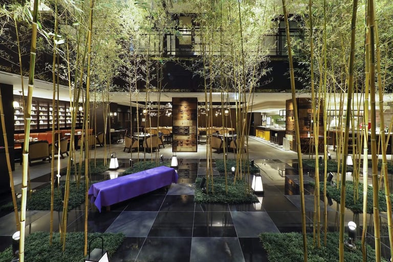 竹林の中庭を眺められるグリルレストラン”GRILL 54TH”では、スタイリッシュなオープンキッチンで素材の旨みを最大限に引き出したグリル料理を提供🍽️ 希少な和牛やシーフードをはじめ、厳選された新鮮食材や地元京都の特産品などが、朝食からディナーまで味わえます。また、料理にマッチするワインも種類豊富🍷