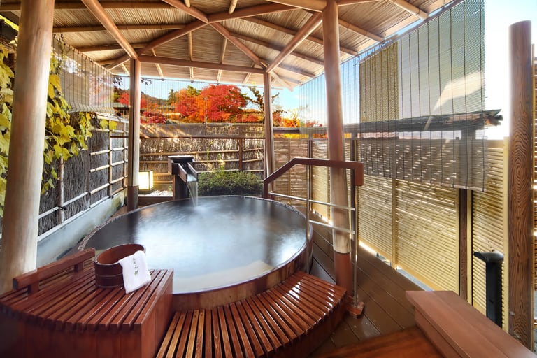貸切露天風呂もあり、源泉掛け流しの湯を独り占めできる至福の湯浴みを。