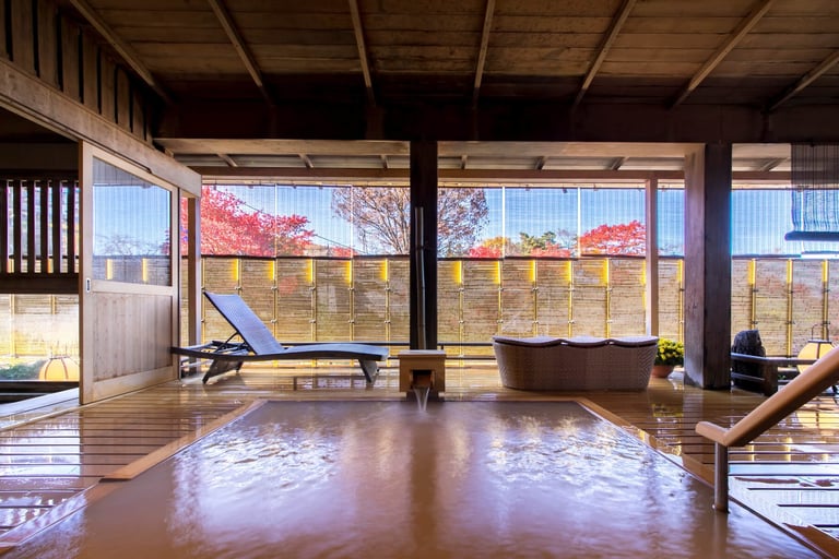 伊香保の名湯“黄金の湯“・”白銀の湯“や、源泉掛け流しが楽しめる大浴場は、谷川連峰を望む“榛栗(はしばみ)の湯“と、檜を使用した本格木造“玉伊吹の湯“の2種類。どちらも露天風呂やサウナがあり、疲れた心と体をリラックス。