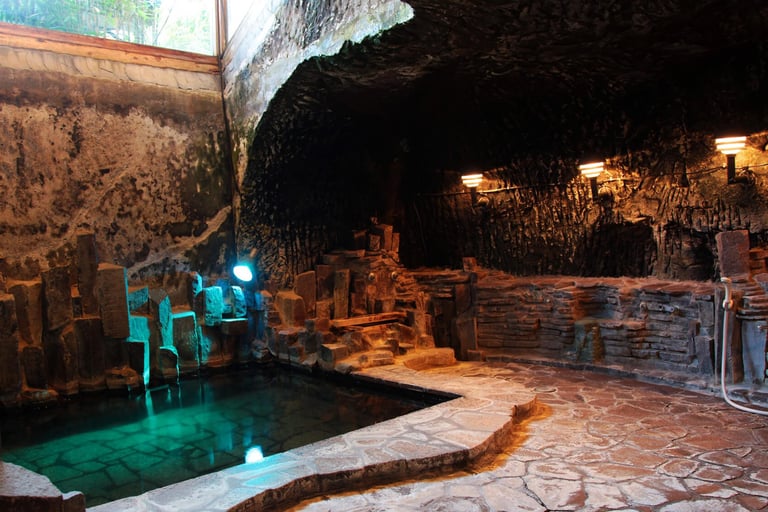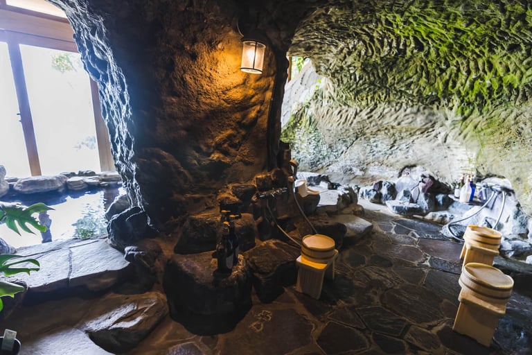 天然温泉がいくつかあって、自分が宿泊した時は「時間制」ではなく、温泉に入る際、出入り口に鍵をする「貸し切り制」でした。時期や宿全体の宿泊者数によって変わるかもしれません。(この日は宿泊者が少なかったようです)