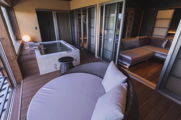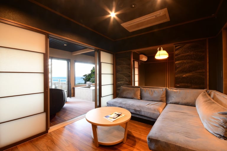 他にも、半露天風呂が室内べランダスペースに設置されている客室や、景色のコントラストを満喫できる客室など、どれも贅沢仕様。
