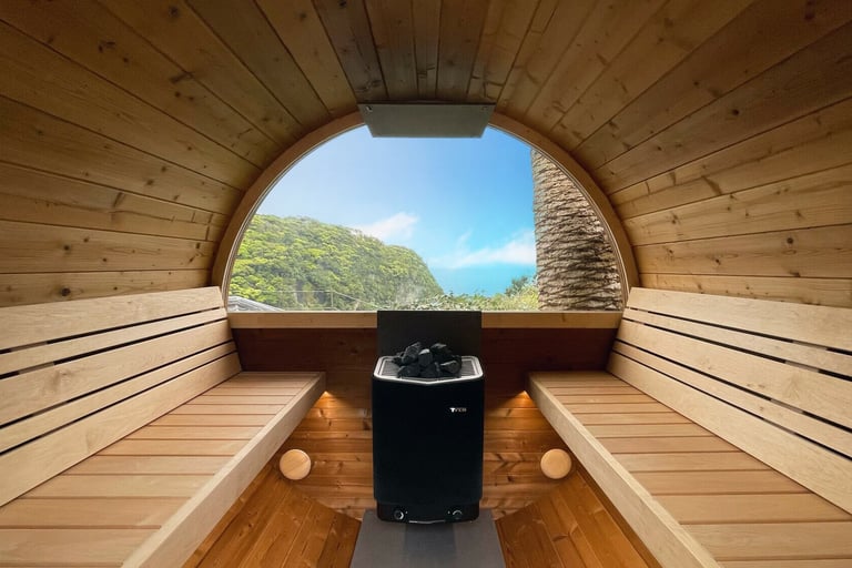 104㎡の広さを誇る「ubaraスイート 花芙蓉(はなふよう)」には、露天風呂とオープンバルコニーが付いており、鵜原漁港からの潮の香りに包まれながらゆったりとしたひとときを。プライベートサウナと半露天風呂付きの「サウナスイート 自若荘(じじゃくそう)」には水風呂、ととのいスペースも併設。海を眺められるテラスでは暖炉も楽しめます。50m程の洞窟を通った先にある離れの「海音(うみね)」は、広々と落ち着いた空間なので、ゆったりとした時間過ごしたい方や、お子様連れにもおすすめ。