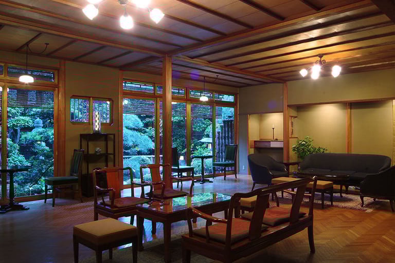 ロビーラウンジ"青月廬"では、日本家屋の美しさとノスタルジックな雰囲気につつまれながら湯上りのくつろぎタイムを✍️
