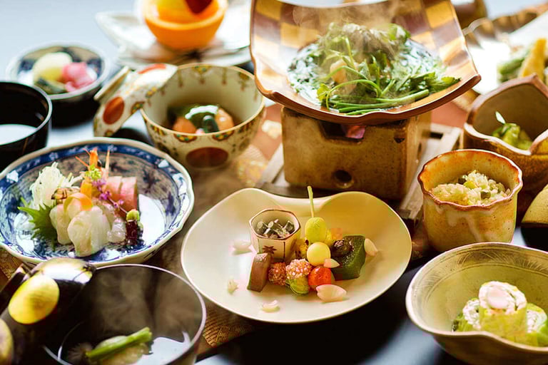 夕食は、旬の食材をふんだんに使用した会席料理🍽