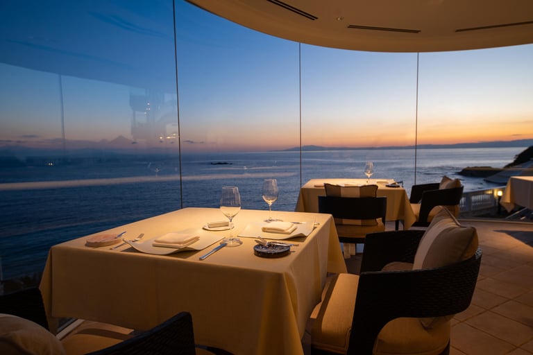 オーシャンビューのレストランでいただく職人の技が織りなす伝統のフレンチ、希少な葉山牛や鮑が味わえ五感で愉しむ鉄板焼、夕食はどちらかお好みで選べます。シニアソムリエがセレクトしたワインペアリングもオプションで別注文することができ、豪華なディナータイムを🍷