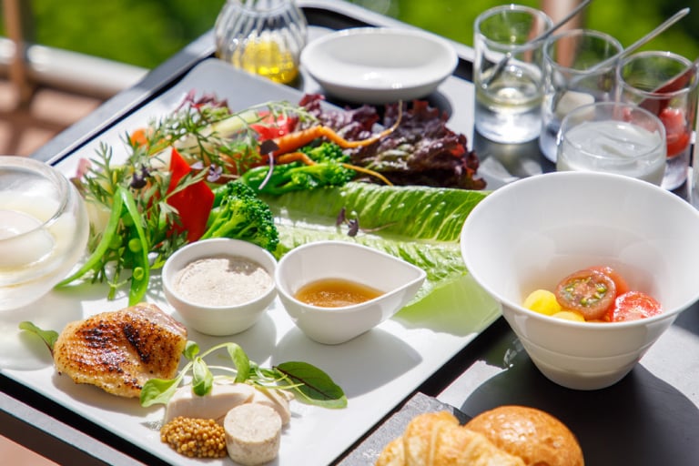 朝食は、洋食・和食から選択可能。オーシャンビューの客室テラスで食事ができ、優雅なモーニングタイムを。