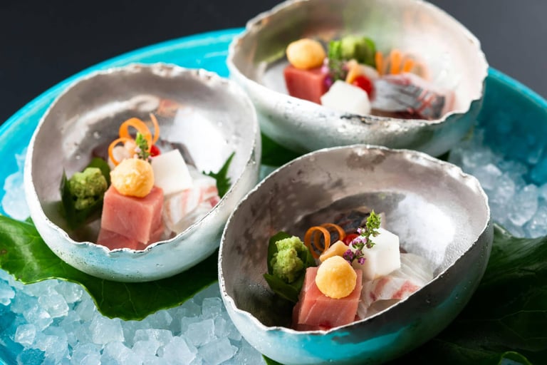 地元・山陰の新鮮な海の幸や島根和牛、旬の食材を使った懐石料理、皆美伝統の「鯛めし」が名高く、鯛の上品な香りと味わいで何度でも食べたくなる極上の一品。