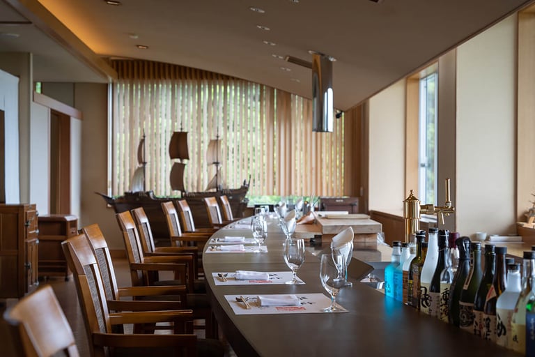 刻々とかわる海景を眺めながらの夕食は、季節の素材そのものの味が楽しめる会席料理や鉄板焼きを堪能🍽 高級食材ウニ・アワビ・壱岐牛など、”玄界灘の宝石箱”として有名な壱岐島の豊富な食材を、地元の焼酎や地酒とともに味わえます。