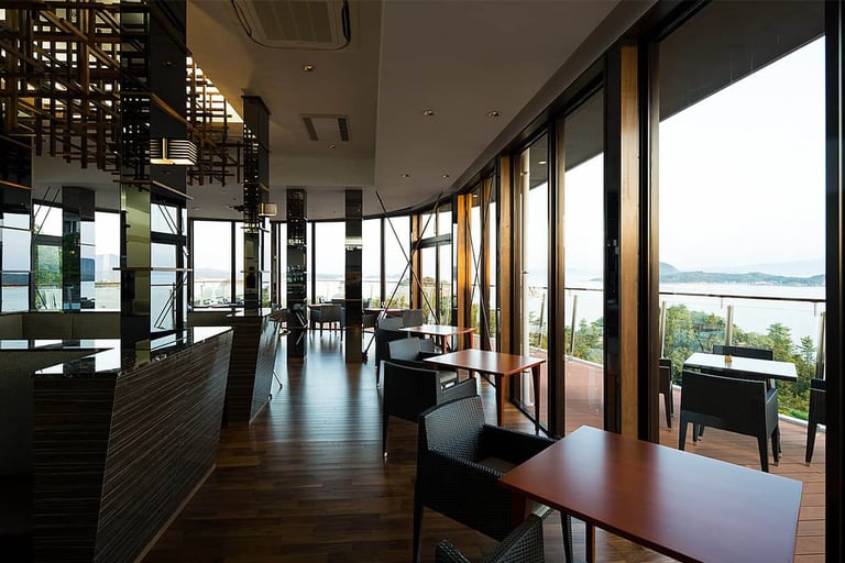 開放的感のあるレストランでいただく食事は、天草の食材や熊本の有機野菜を用いた天草イタリアン🍽️ 新鮮な海の幸をはじめ、熊本のあか牛や和牛など、シェフが厳選したこだわりの食材が味わえるコース料理です。