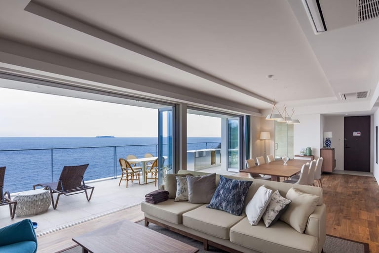 客室は、1日1組限定のインフィニティプールが付いた一棟貸し”THE SALON”、露天風呂温泉付きの”ラグジュアリー・スイート”、ビューバスのある”オーシャンビュー・スイート”の3タイプ。