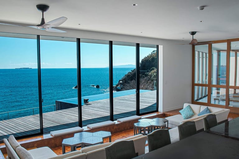 朝日がつくるグラデーション、青い空と海、赤く染まる夕焼け、満天に煌めく星空、朝から晩まで絶景を満喫できる贅沢さ。