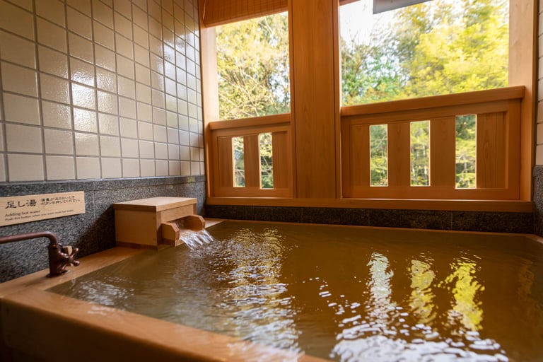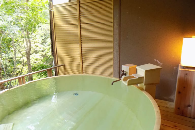 温泉は、桂川のせせらぎが聞こえる大浴場、四季折々の景色が眺められる露天風呂、貸切風呂があります。4つの貸切風呂の内、2つが露天風呂になっており、檜や岩などそれぞれ雰囲気の違った温泉が。
