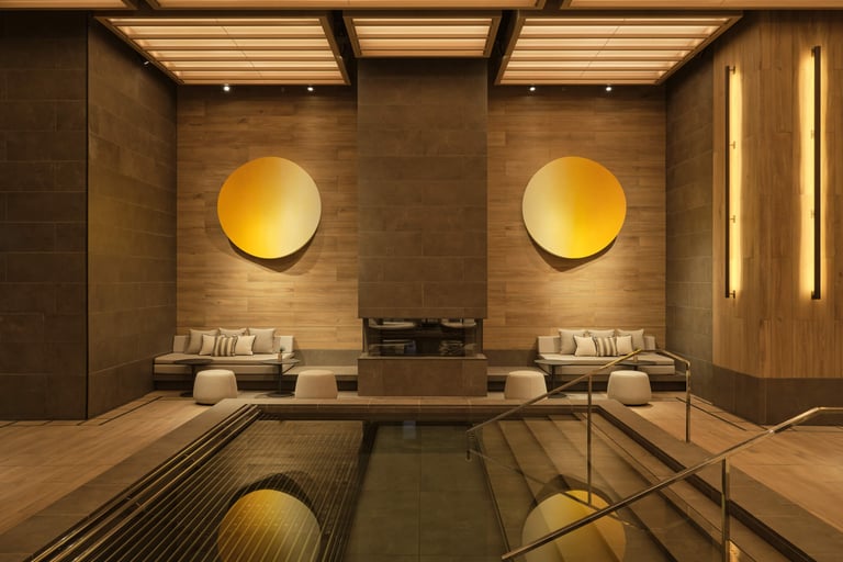 都内ホテル最大級の面積を誇る約4,000㎡のウェルネス&スパには、都内屈指の面積を誇る約340㎡のジムや、25mの温水プールとラウンジプール(ジェットバス)、グループレッスン用の5つのムーブメントスタジオ、7つのスパトリートメントルーム、ハマム(トルコ発祥のサウナ)とバーニャ(ロシア発祥のサウナ)を備えた2つのプライベートスパハウスなど、他にはない珍しい設備が充実。